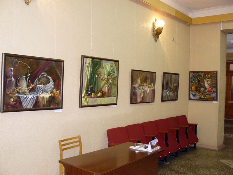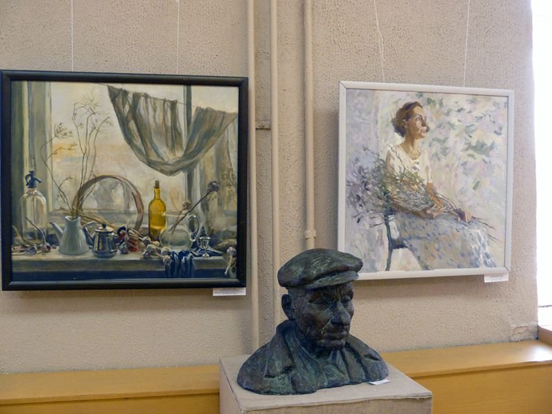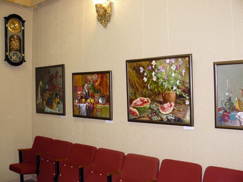 На выставке представлено более 40 учебных работ: натюрмортов, портретов, интерьеров, выполненных студентами на занятиях живописью.