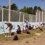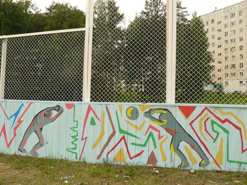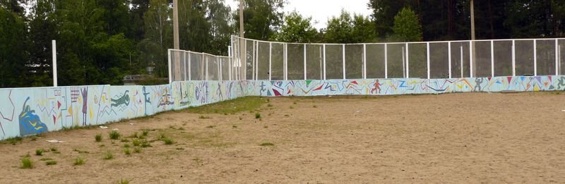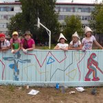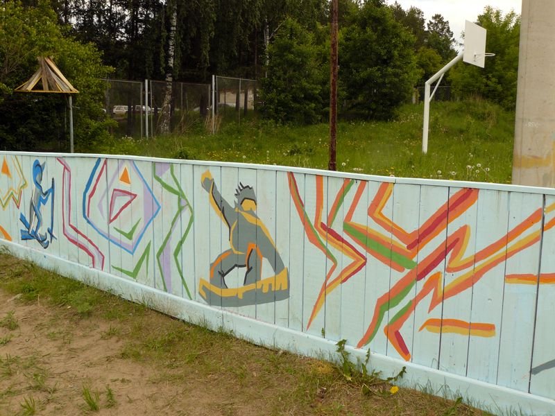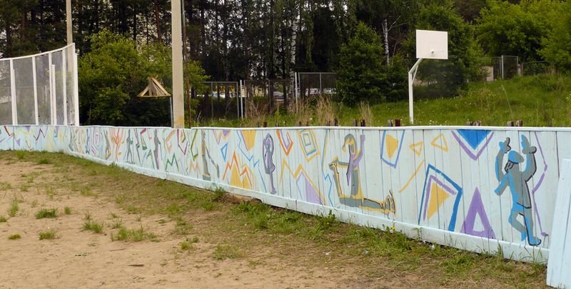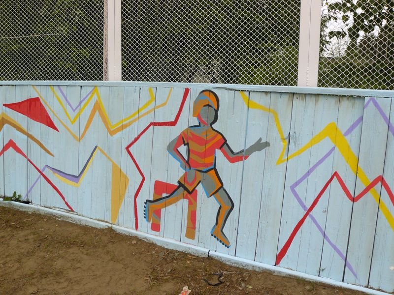 Творческим проектом завершился учебный год в МБОУ ДОД "ДХШ": 6 июня 2015г более 70 учащихся под руководством своих преподавателей преобразили яркими и динамичными композициями спортивный корт ДЮСШ «Юность». В проекте использовались эскизы, разработанные учащимися во время экспресс-конкурса, а также рисунки на спортивную тему, выполненные ранее.